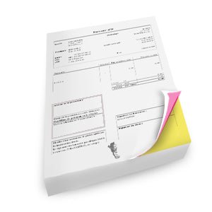 Bloc NCR/carbone imprimé en une couleur (NOIR). Les feuillets sont BLANC et JAUNE.